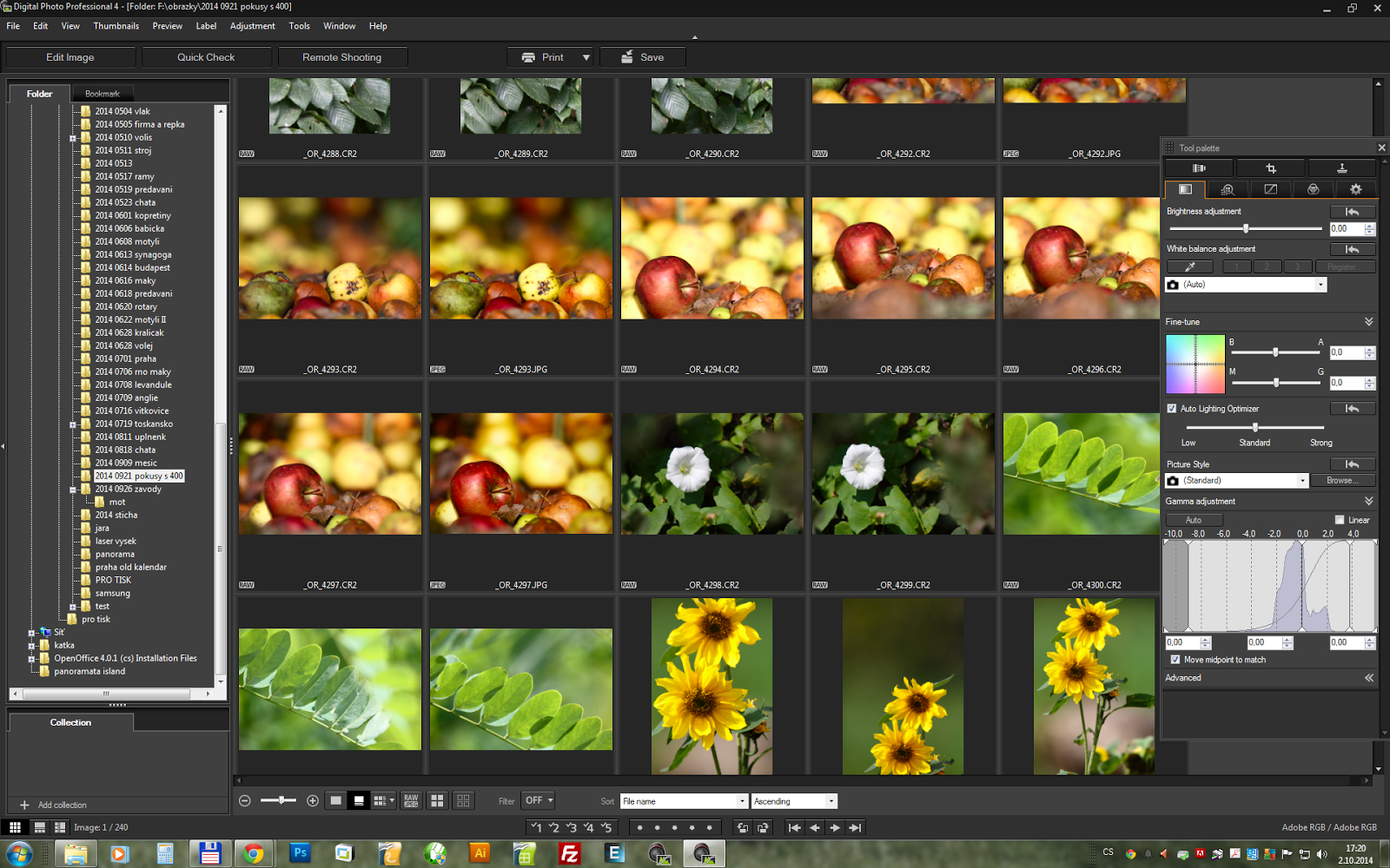 - Nedoladěná funkcionalita. Například o mých fotografiích nejdříve tvrdil, že jsou vyfocené v barevném prostoru sRGB, na který nikdy nefotím. Po restartování aplikace už byla informace správná - AdobeRGB