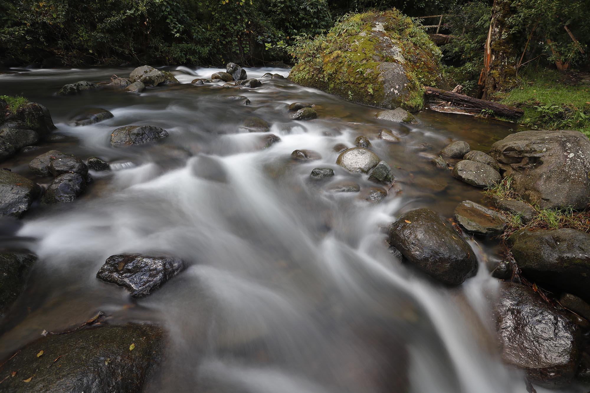 Dnes se mi nechce vstávat, ale kolibíříci jsou neúnavní, a tak se mi daří stávkovat asi jen 10 minut. Po chvíli už směřuji k řece Savegre. Jose mi doporučil jedno místo, které prý není daleko. Bohužel zapomněl dodat, že je dost do kopce. Naštěstí jsme v horách a teploty pro takovou túru jsou příjemnější. K focení jsem si připravil Canon 1Dx s objektivem 17-40 mm a nasazeným šedým filtrem ND64. Jose měl pravdu, místo je to opravdu krásné. Snažím se najít zajímavá zákoutí divoké řeky s kaskádami. Dostane se i na trochu adrenalinové zážitky, neboť lávky přes řeku jsou zde vlastně jen polorozpadlé, kluzké stromy se zábradlím, které s každým dotekem ještě více rozpadá.