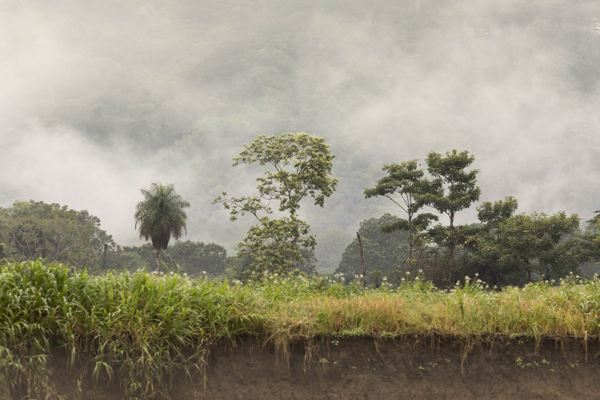 Soumrak v údolí přichází ještě rychleji než na pobřeží. Večeře v 6 hodin je již ve tmě. Přes opar se na nás na chvíli snaží kouknout měsíc v úplňku, ale rychle to vzdá a schová se za mraky.