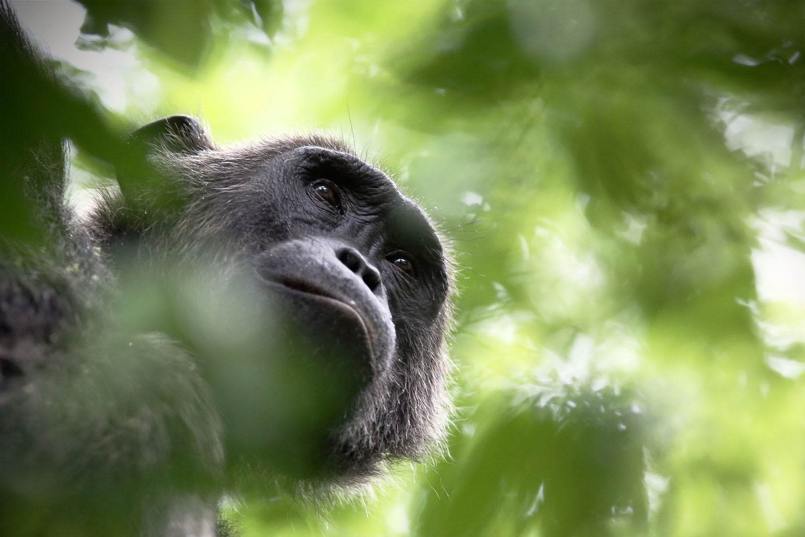 Po dalších 20 minutách jsme konečně u cíle. Nastává nám již známá fáze nahánění toho nejlépe postaveného šimpanze. Jelikož jsou velmi aktivní a akční, občas focení připomíná spíše terénní běh. Podmínky jsou ovšem lepší, než v prvním případě. Světlo je rozptýlené, šimpanzi jsou blíž a vstřícnější. Ovšem jen do chvíle, než se rozhodnou si s námi hrát tak, že po nás začnou házet celé větve. Nakonec nás ale odmění tak, že ze stromů slezou na zem a nechají se fotit z nějakých 5 metrů.
