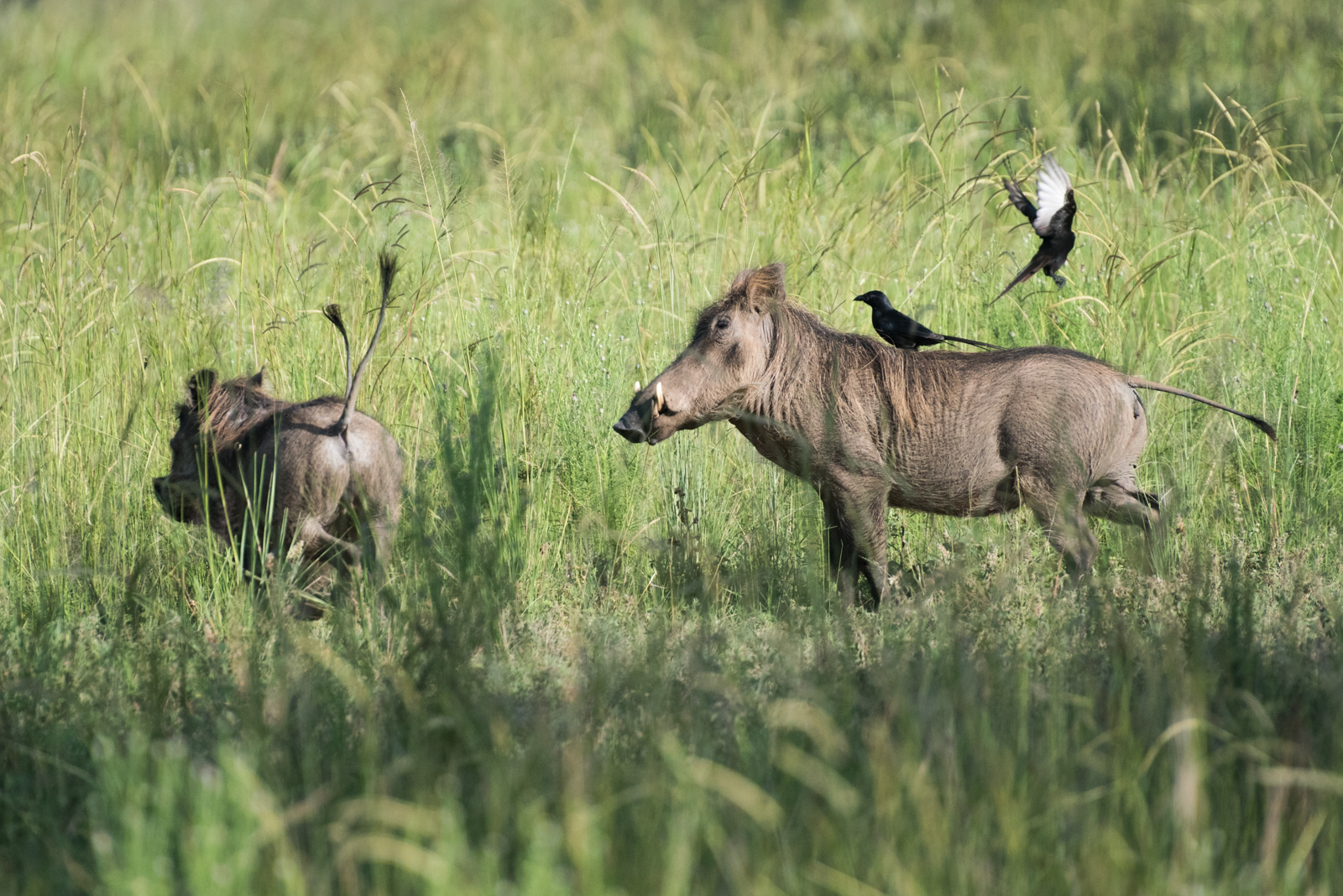 Ze začátku se kolem nás producírují zejména věčně naštvaní buvoli, několik druhů antilop, prasata bradavičnatá, spousta ptáků a nakonec i žirafy. Jejich množství nás ohromí. Nikdy jsme neviděli sedící žirafu. Je to úžasná podívaná, když z vysoké trávy trčí jen žirafí hlavy. Jsou všude a tak blízko, že přichází na řadu i široké sklo.