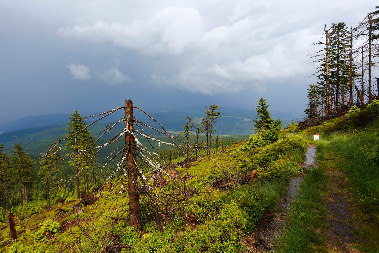 Co jsme tedy nafotili? Z celodenního výletu nakonec zbyl čas na půl hodiny focení a pak trochu frantování při úprku v dešti. Proto použiji i pár fotek, které jsem udělal v předchozích letech a třeba Vás budou motivovat, abyste Kralický Sněžník také navštívili.