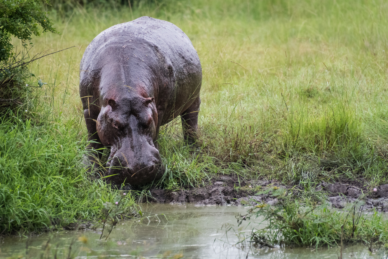 Na oběd zůstáváme v restauraci, která se nachází uvnitř parku a nabízí krásný výhled na Kazinga Channel, po kterém se máme přibližně za 2 hodiny prohánět na lodi. Jedná se o přírodní 32km dlouhý vodní kanál velmi bohatý na faunu i floru, který vznikl v dávné minulosti vulkanickou činností (stejně jako již zmíněná solná jezera) a který spojuje jezera - Edward a Geogre. Po výborném obědě si připijeme místním ginem, když nás trochu vyděsí, když nám před očima mizí jak vodní kanál, tak vše, co je jen pár metrů od nás. Důvodem naštěstí není nekvalitní alkohol (gin byl naopak výborný), ale tropický déšť, který se přihnal s takovou rychlostí a hlavně intenzitou, na kterou v našich podmínkách nejsme zvyklí. Nebe padlo na zem a co nezakryla mlha a mraky, dokonaly proudy vody.