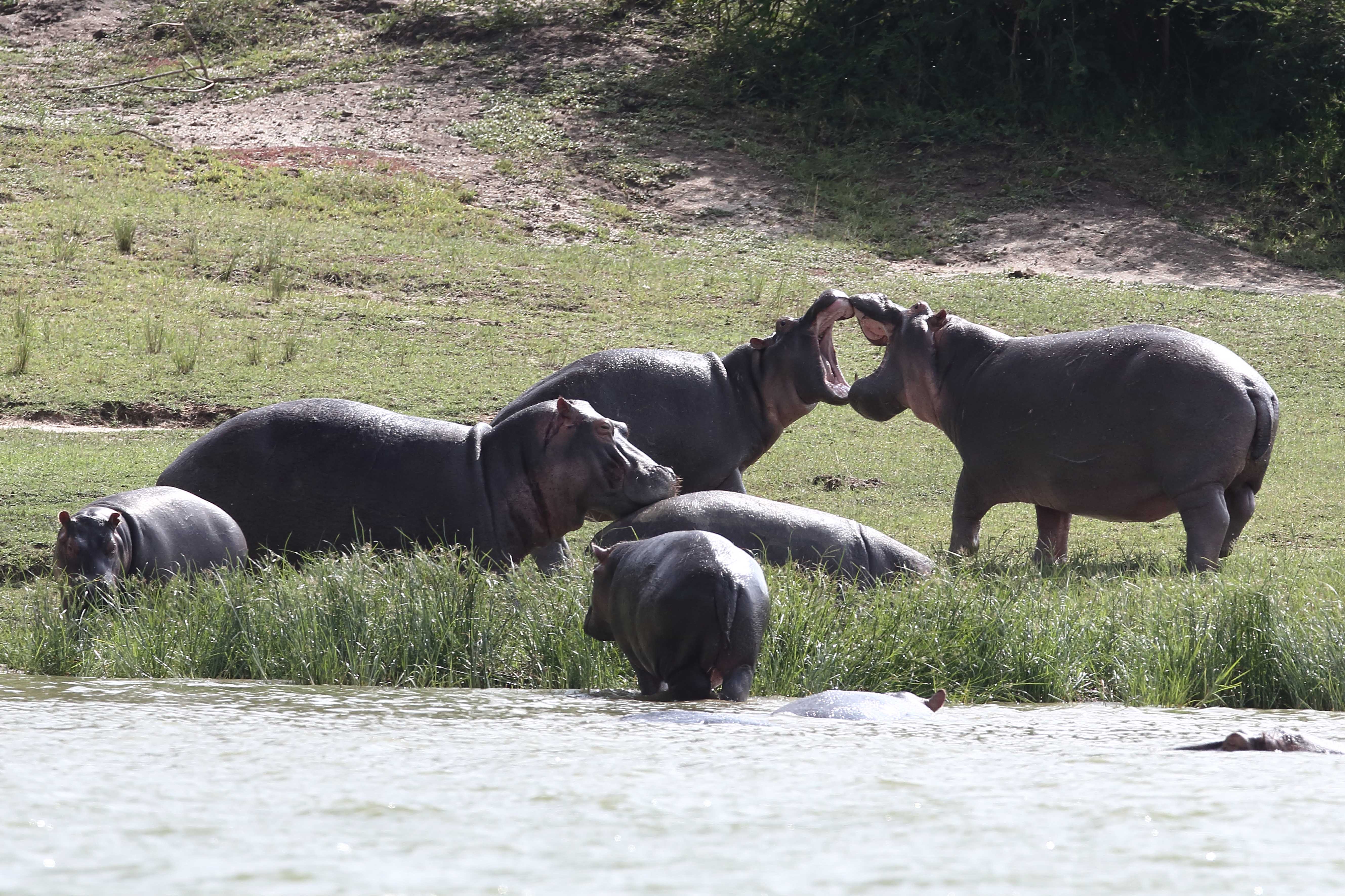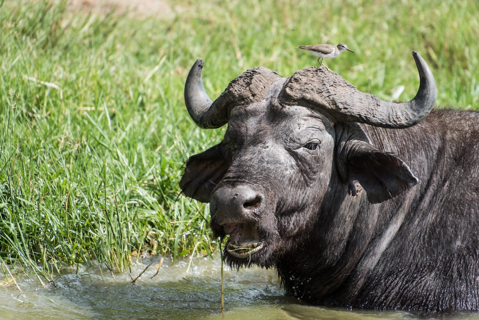 Ve chvíli, kdy nastupujeme na loď, svítí slunce a na obloze jsou krásné a velmi fotogenické běloskvoucí mraky, ze kterých už nespadne ani kapka. Na bližším břehu vidíme opět buvoly. Ale žádná velká stáda, spíše jednotlivce. Dozvídáme se, že většina z nich jsou starší samci, vyhnaní ze svých původních stád - což je v buvolím světě běžné. A že tohle místo je pro ně ideální pro klidné dožití, kterého si jinde tolik neužijí, protože osamocení jsou velmi snadným cílem pro predátory. Společnost jim, jak jsme již viděli mnohokrát předtím, dělají hroši, kterých je tu tolik, že se jim naše loď musí doslova vyhýbat.
