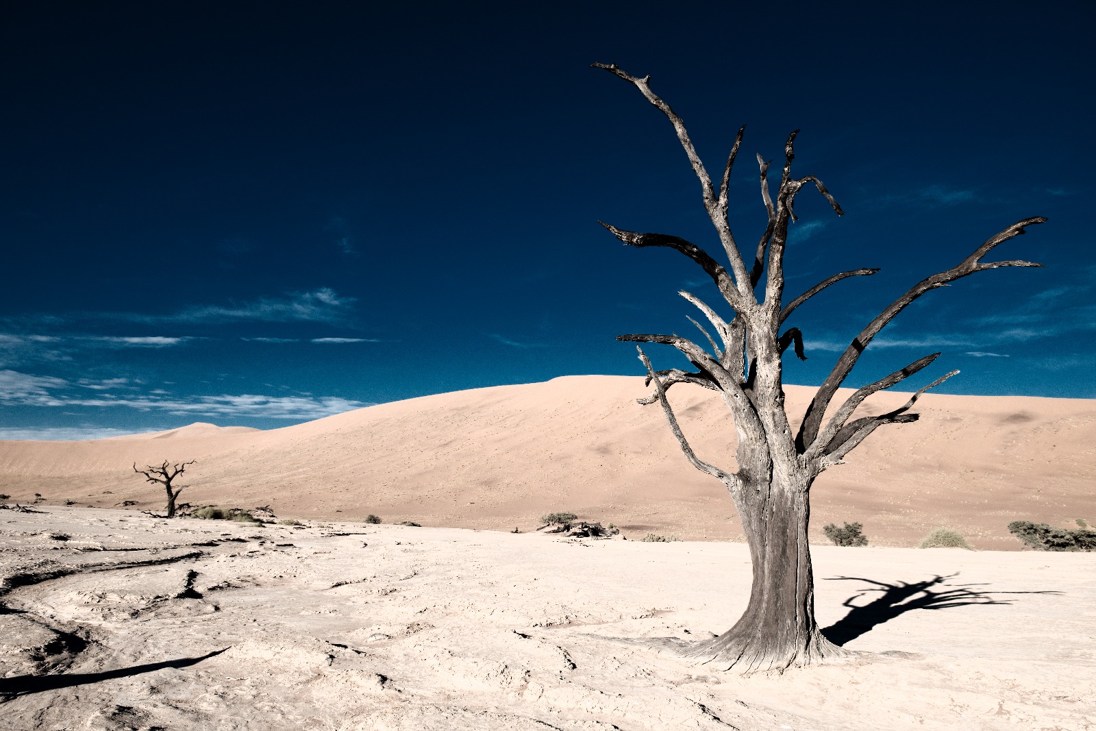 Dead Vlei, Namibia Dead Vlei (Mrtvá Bažina). Stromy jsou prý 900 let staré, konzervované suchem a slunečním žárem Zpět do galerie Autor Milan Baťha Autorský poplatek za m2 200 Kč s DPH Motivy Krajina , Namibie Barvy Tmavě modrá Béžová Vytvořit fotoobraz