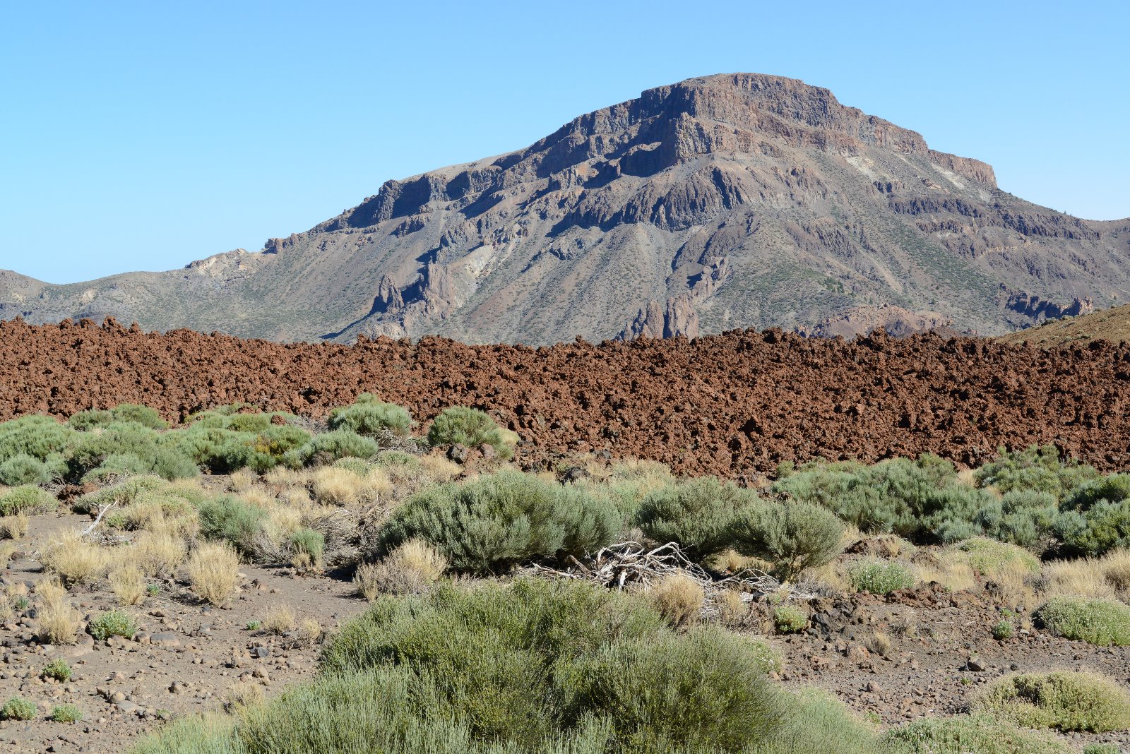 Kanárské ostrovy, Tenerife, národní park Teide, kaldera Las Cañadas, hora, skála, láva, blankyt, keře, divočina