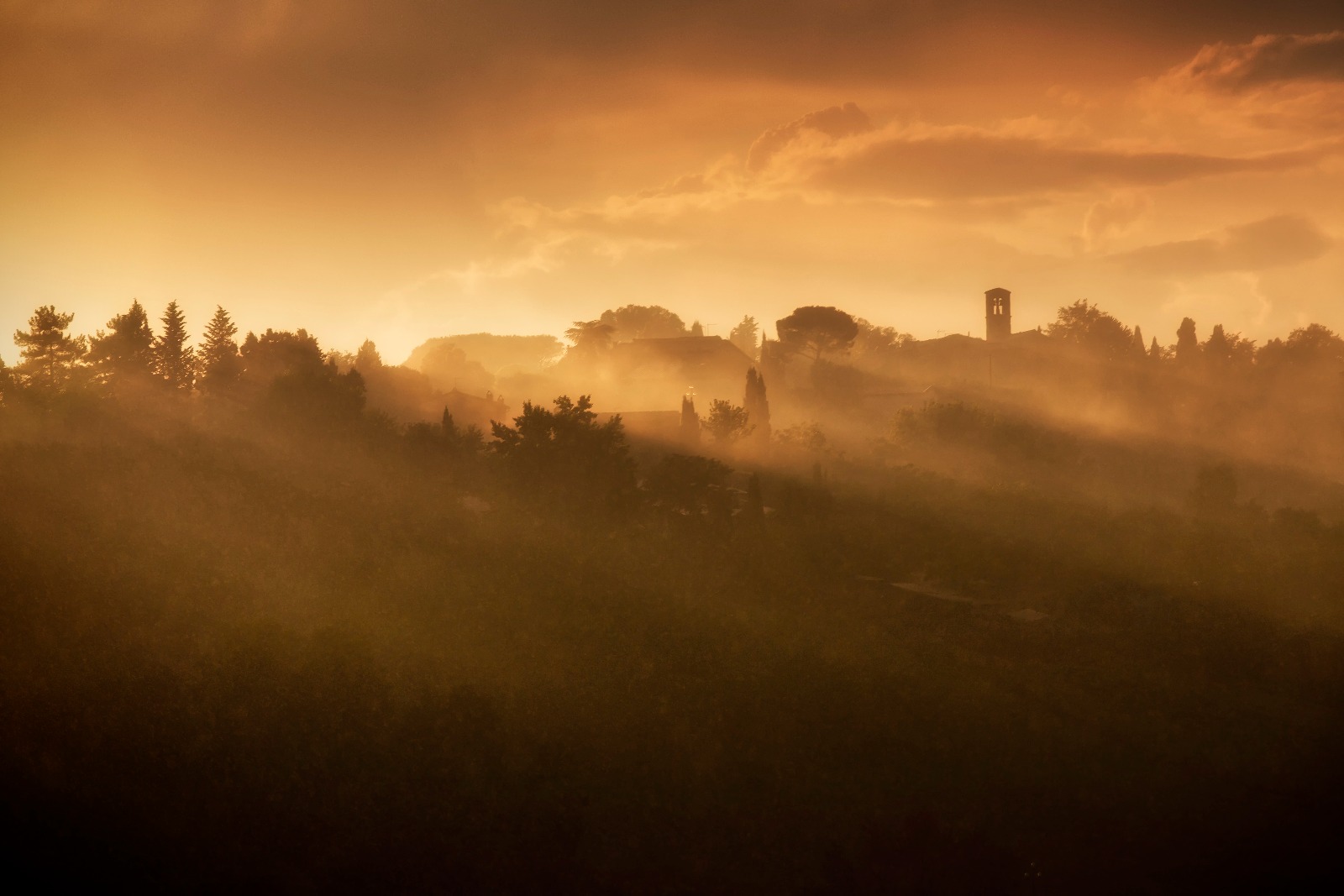 Večerní slunce poblíž Sieny Mlha po bouřce a nízké slunce vyčarovalo kouzelnou atmosféru Zpět do galerie Autor František Mazáč Autorský poplatek za m2 200 Kč s DPH Motivy Krajina , Itálie Barvy Oranžová Vytvořit fotoobraz