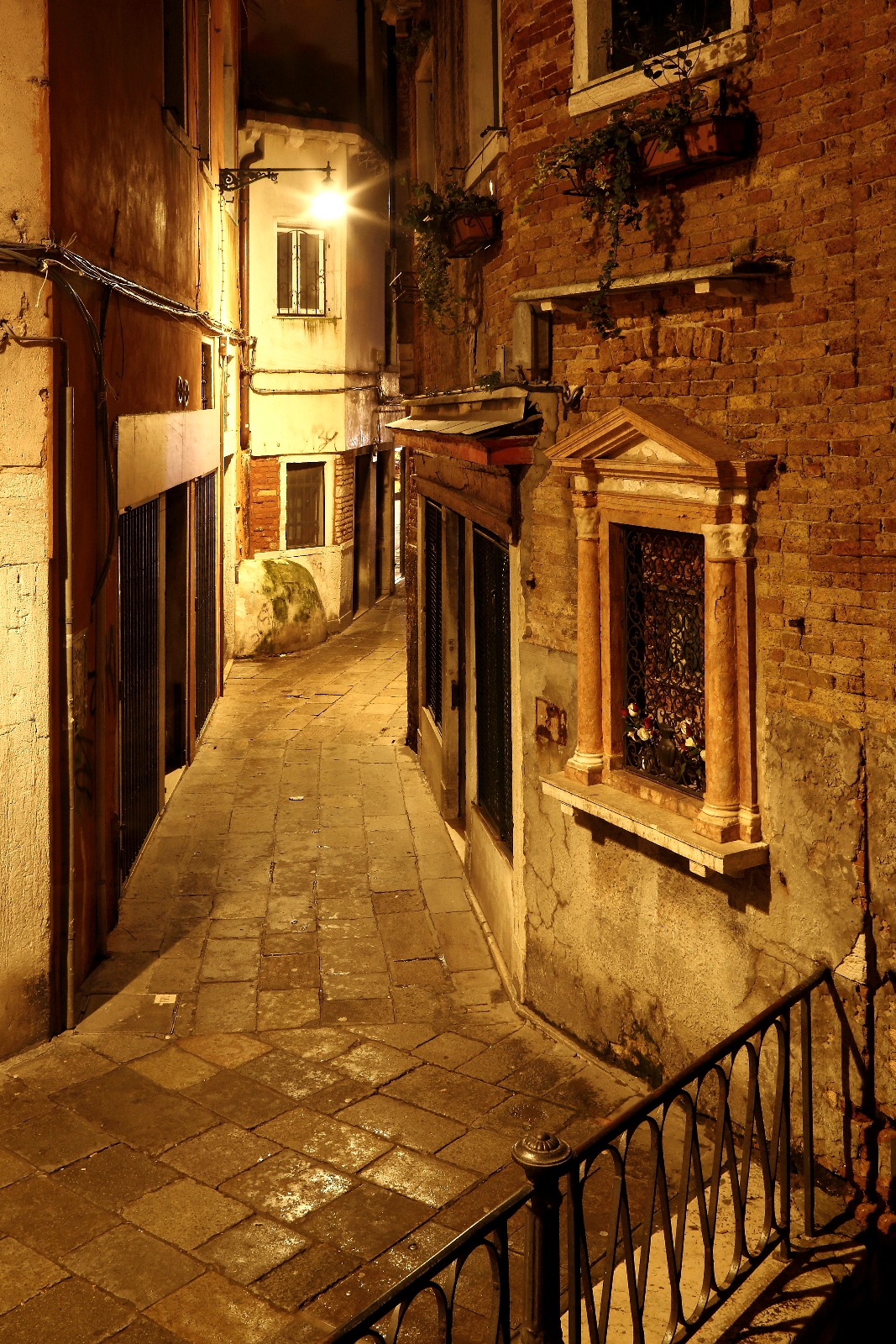 Zapadla benátská noční ulička Gondoliéři už sli dávno spát. Zpět do galerie Autor František Mazáč Autorský poplatek za m2 200 Kč s DPH Motivy Architektura , Itálie Barvy Hnědá Béžová Oranžová Vytvořit fotoobraz