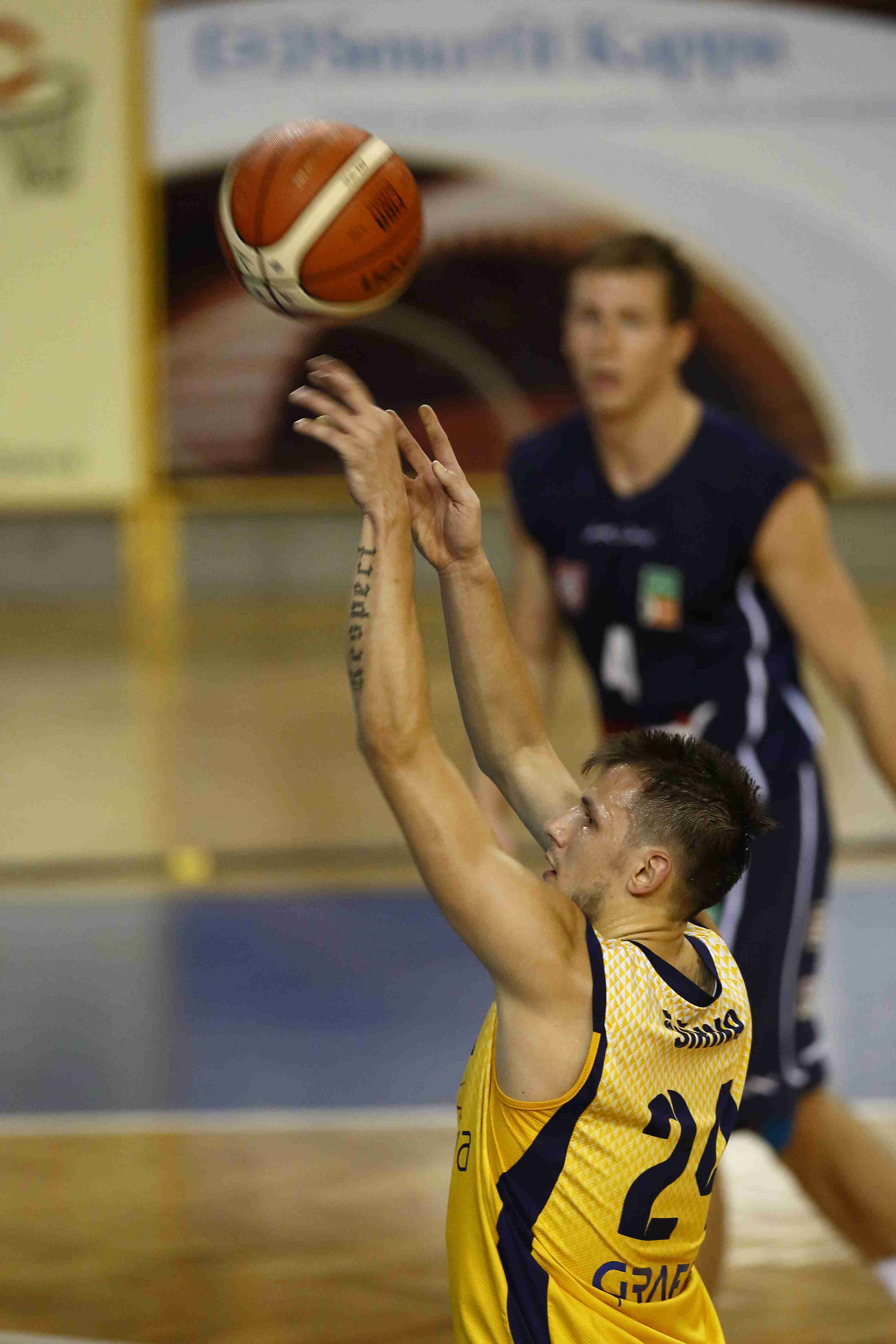 Narozdíl od volejbalu, kdy je lépe fotit sportovce zhora, u basketbalu bývají fotografie z úrovně balubovky zajímavější.