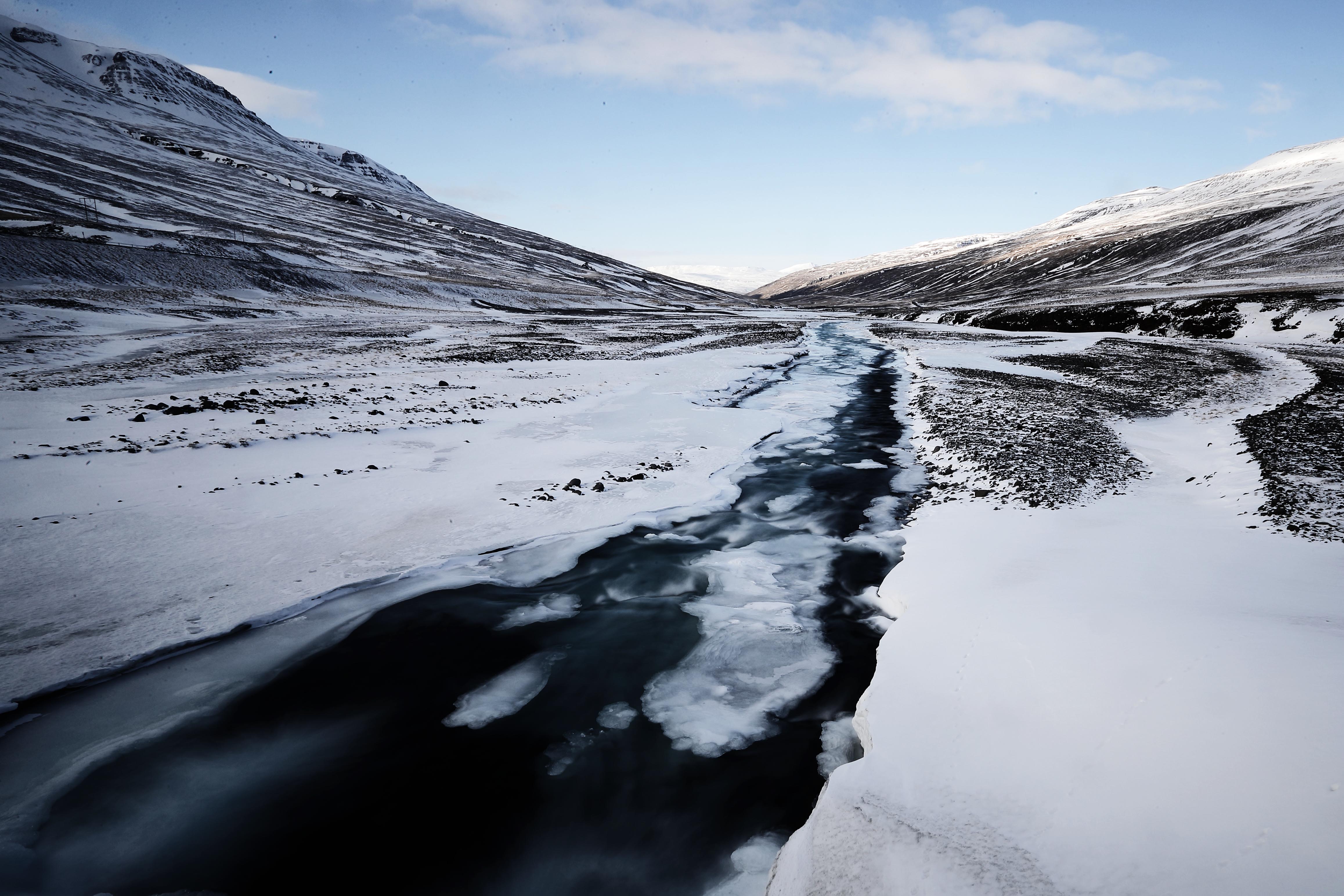 Probouzíme se do slunečného ale mrazivého a větrného dne. Opět nás čeká dlouhá cesta po zamrzlých silnicích. Jako první se zastavujeme u říčky, kde zkoušíme jak široké, panoramatické záběry, tak detaily detaily i makro ledových struktur. Poté co dostatečně promrzneme, pokračujeme v cestě, během které dokumentujeme i nelehkou práci řidičů. Po celou dobu nás doprovází opravdu silný vítr.