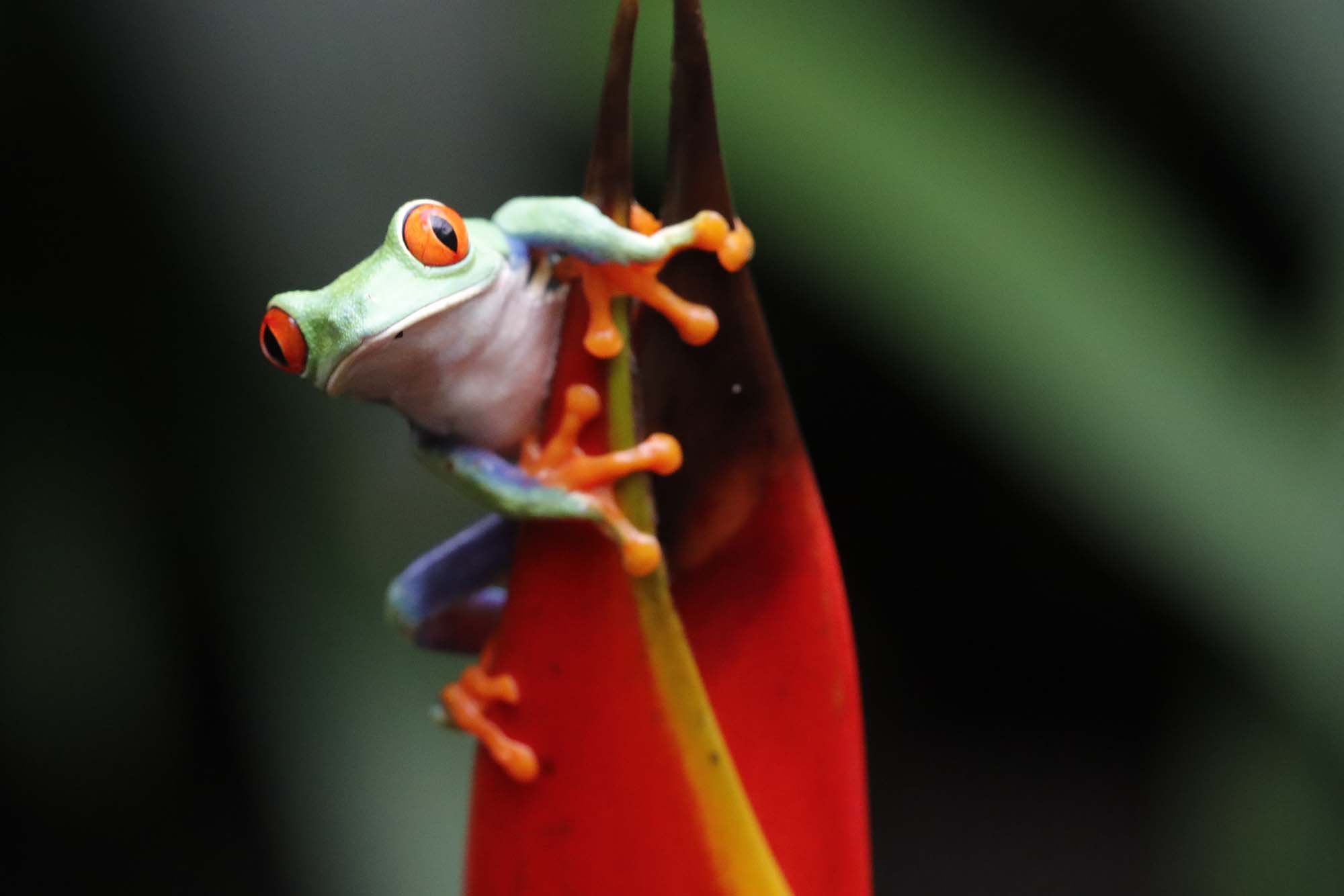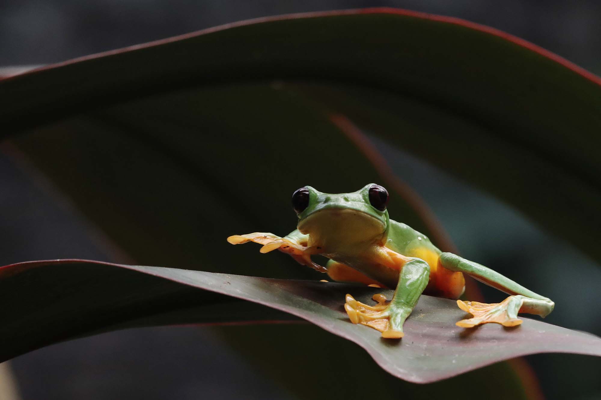 Fotím osvědčenou kombinací Canon 1Dx + 400 mm/f2.8 + 1.4 konvertor a díky slunci je třeba výrazně podexponovat. Vedle papoušků zachytíme i několik krásných opiček a poté již nastává čas přesunout se do La Paz Garden. Jedná se o ohromné zahrady, kde na jednom místě najdete skoro veškerou flóru a drobnou faunu z celé Kostariky. Je tu také velké množství lidí, a tak se věnuji jen tomu, co sem přilákalo mě – pavilon žab. Žabky spí, ale za dolar nám je místní průvodce probudí a po chvíli začínají pózovat. Jsou krásně barevné, koulí očima (jak by ne, když jsme je právě probudili) a snaží se schovat někde pod list, aby mohli zase usnout.