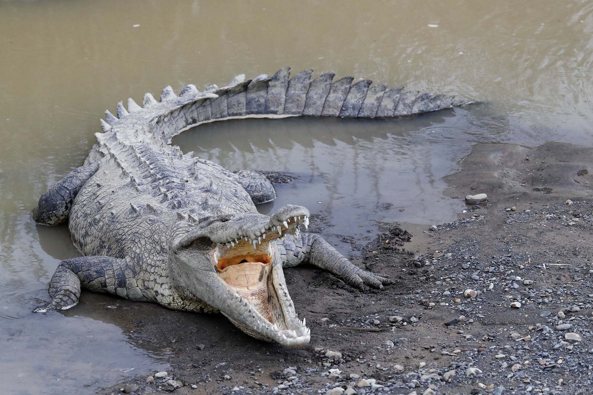 Po obědě se vydáváme po lodi za krokodýly americkými. Oblast Tarcoles je údajně jedno z posledních míst, kde se tito obři vyskytují v tak hojném počtu ve svém přirozeném prostředí. Ještě po cestě k lodi zastavujeme u mostu, pod kterým se válejí opravdu obrovské kusy. Nějaký domorodec se nám pokouší nabídnout kuře, jako potravu pro naše objekty zájmu, ale s díky odmítáme.