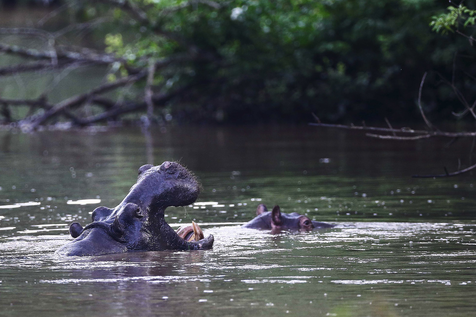 Na některých místech se pár slunečních paprsků dostane až k nám a vytváří tak kouzelnou a hlavně velmi fotogenickou atmosféru. Po nějakých 20 minutách jsme došli ke zmíněné říčce, kde dovádí hroši. Jakmile nás zpozorují, vydají se naším směrem a někteří z naší skupiny začínají být velmi nervózní. Proto spěšně odcházíme. Navíc hrochů jsme v Ugandě vyděli již na několik paměťových karet.