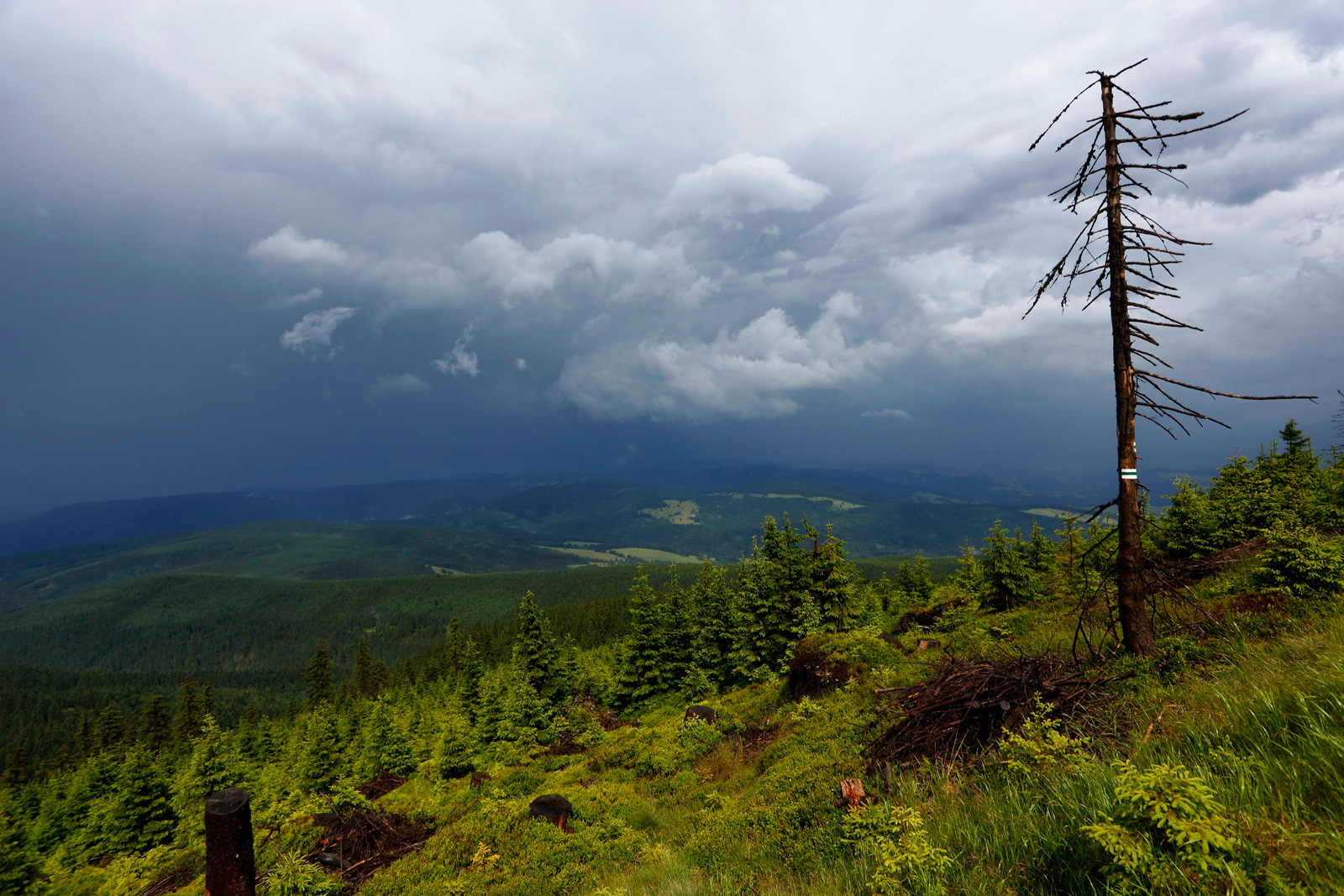 Co jsme tedy nafotili? Z celodenního výletu nakonec zbyl čas na půl hodiny focení a pak trochu frantování při úprku v dešti. Proto použiji i pár fotek, které jsem udělal v předchozích letech a třeba Vás budou motivovat, abyste Kralický Sněžník také navštívili.