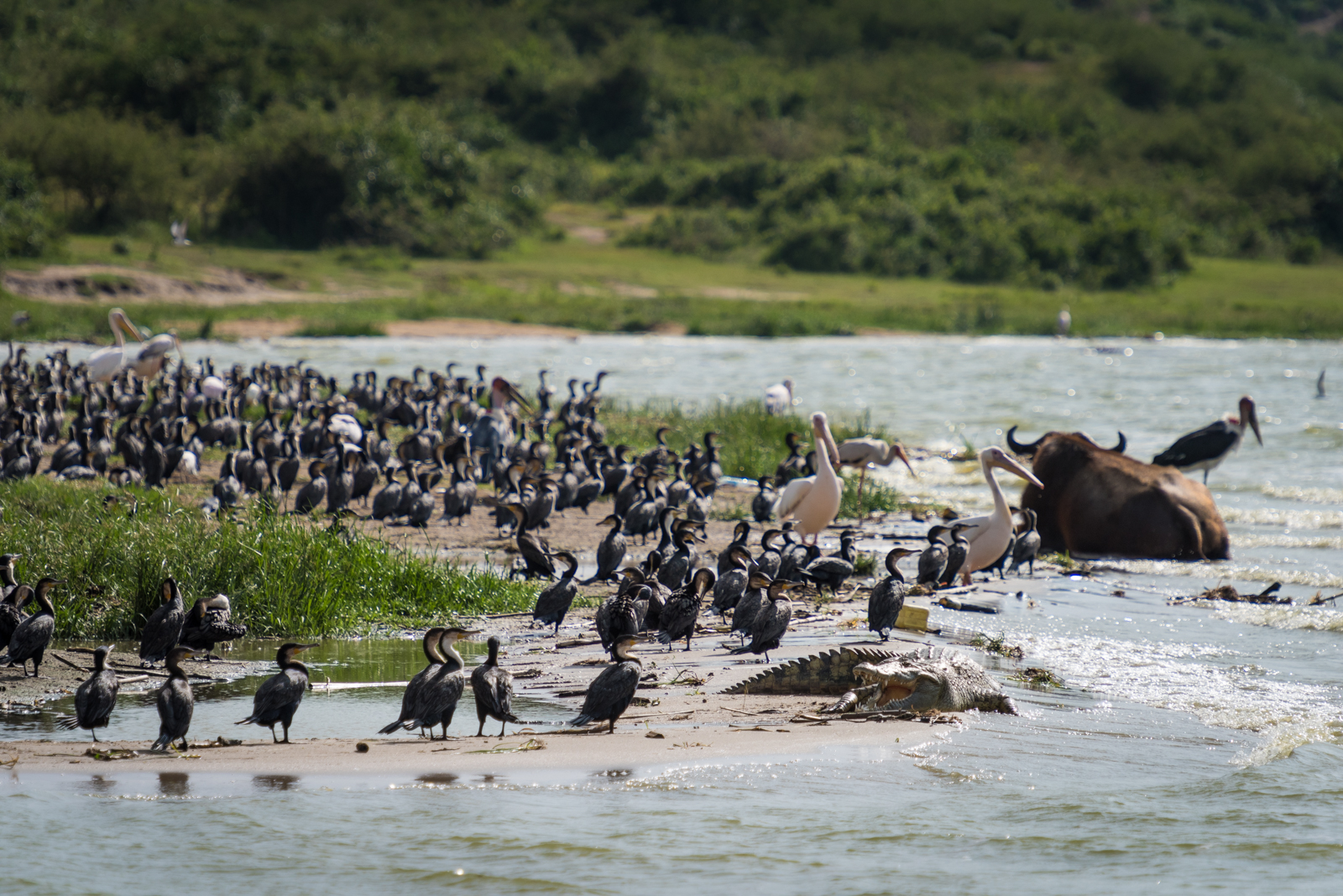 Začínáme brzy ráno, protože nás čeká nejen další game drive, ale také odpolední plavba lodí. Na safari pět potkáváme staré známé - slony, antilopy, celá stáda buvolů, z kterých si místní volavky udělali dopravní prostředek a další stovky různých opeřenců. Ale také jednoho naštvaného hrocha, kterého jsme podle všeho vyrušili v jeho plánované bahenní koupeli. A tak raději pokračujeme dál, k solným jezerům, z kterých místní těží sůl a jež je také domovem pro plameňáky. Také se nám opět ukázal národní symbol Ugandy - jeřába královského.