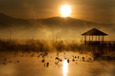 Jezerní pavilón východ slunce nad jezerem Inle, Myanmar Zpět do galerie Autor Milan Baťha Autorský poplatek za m2 350 Kč s DPH Motivy Barma , Krajina Barvy Hnědá Béžová Žlutá Vytvořit fotoobraz