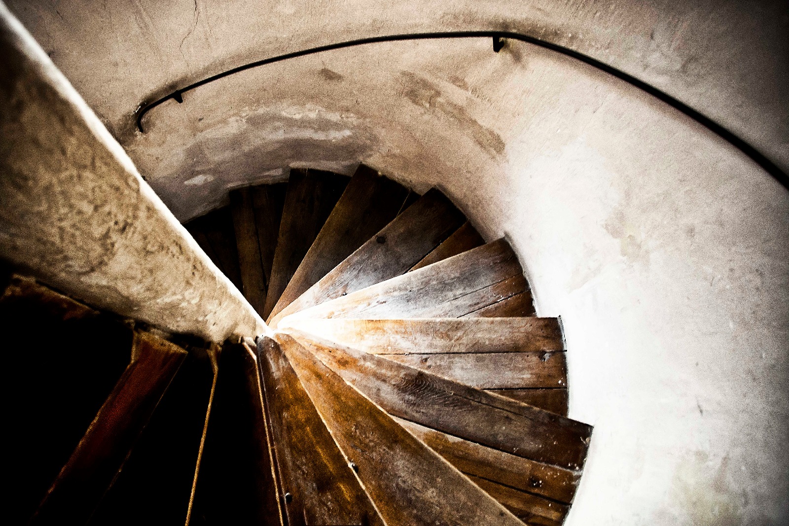 Zpět do galerieStaré schodiště v katolickém kostele v Rustu, které nás přivedlo k nádhernému výhledu na městečko